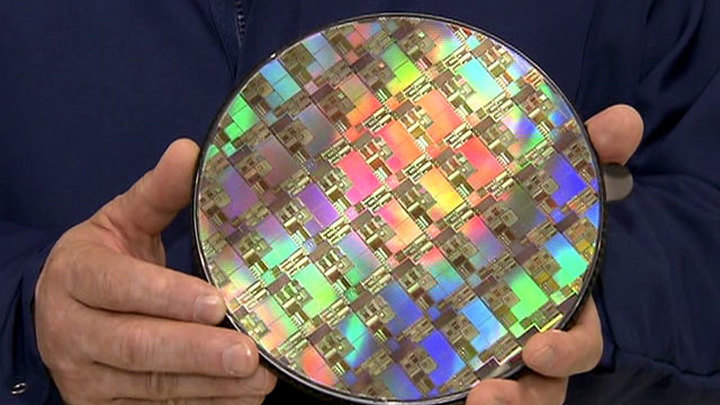 На одной кремниевой пластине помещается больше десятка микросхем. Все они разные, но одинаково предназначены служить высокой цели. Их установят на компьютеры космических аппаратов.